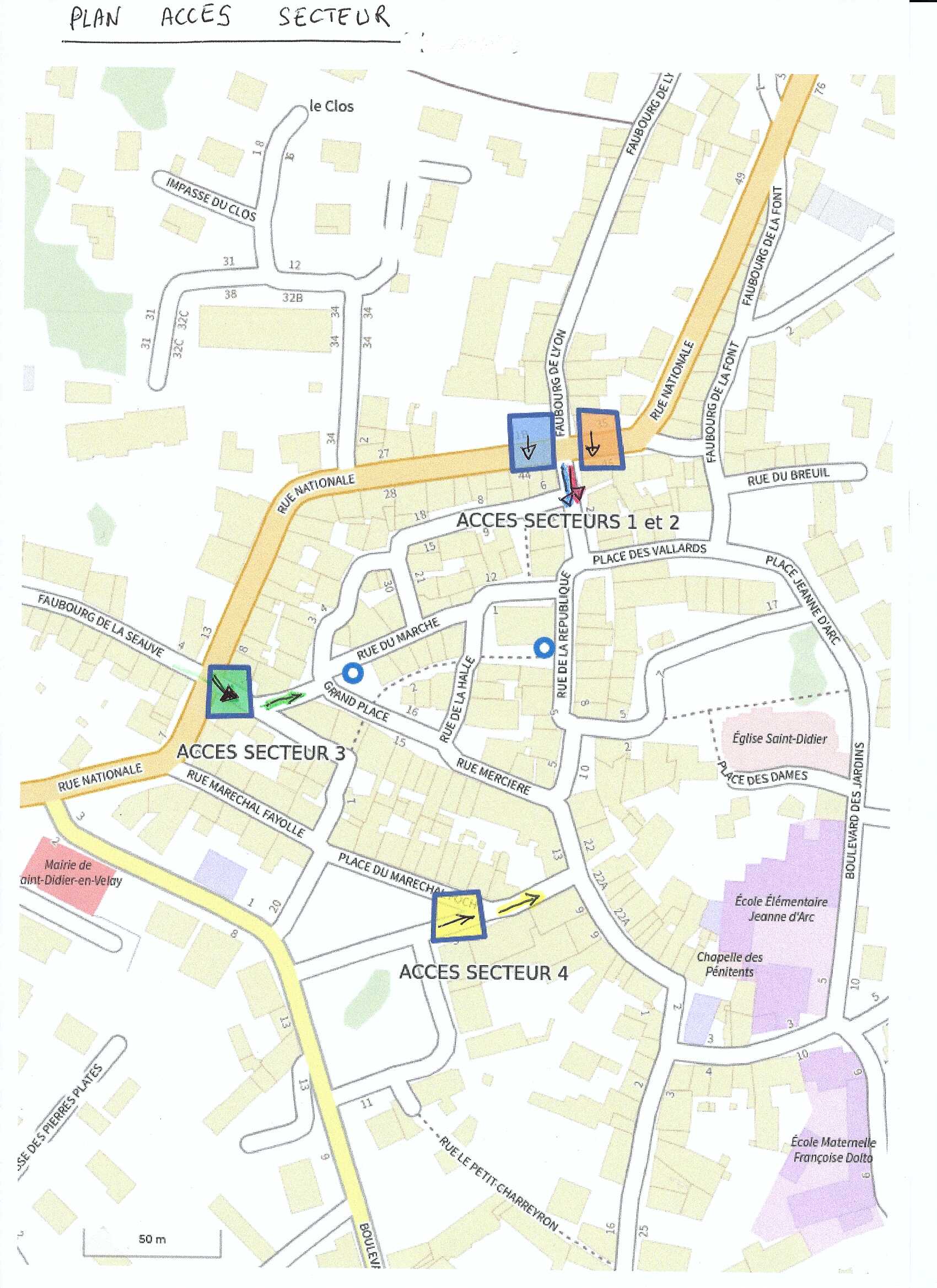 diriger au mieux, merci de respecter les accès en couleur suivant